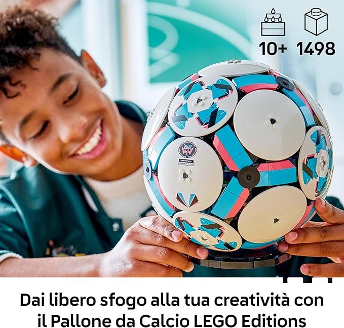• DIMENSIONI: il pallone da calcio LEGO® di 1.498 pezzi misura 22 cm di altezza, 21 cm di larghezza e 21 cm di profondità