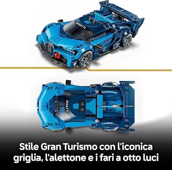 • AUTO GIOCATTOLO BUGATTI: kit modello di Super auto aportiva Bugatti Vision GT LEGO® Speed Champions (77253) per i bambini, le bambine e gli appassionati di auto dai 9 anni in su