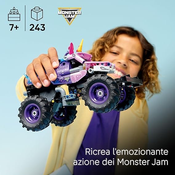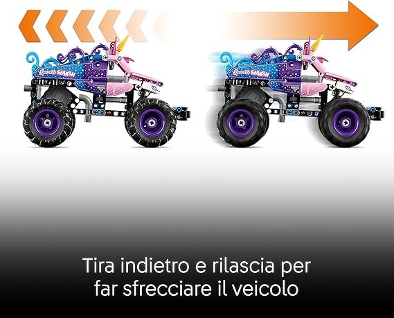 • GIOCATTOLO COSTRUIBILE MONSTER JAM™: il truck Monster Jam™ Sparkle Smash™ a retrocarica LEGO® Technic (42220) offre ore di gioco per i bambini e le bambine dai 7 anni in su che amano i monster truck e gli unicorni giocattolo
