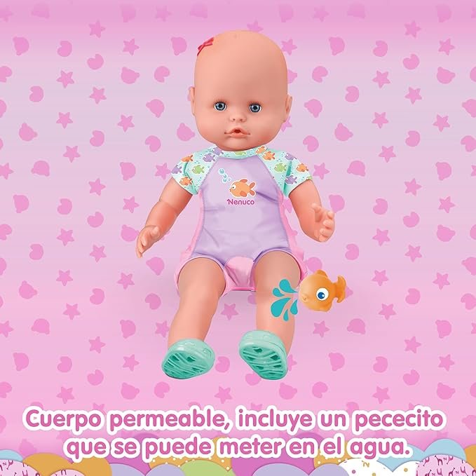 • Bambola morbida da 35 cm con un corpo speciale per poterla immergere nell’acqua;