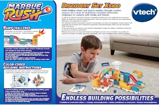 • il Discovery set è una grande pista per le biglie non elettrica con 30 pezzi e 3 MarbleBiglie incluse, ideale per la prima corsa delle biglie del tuo bambino!
