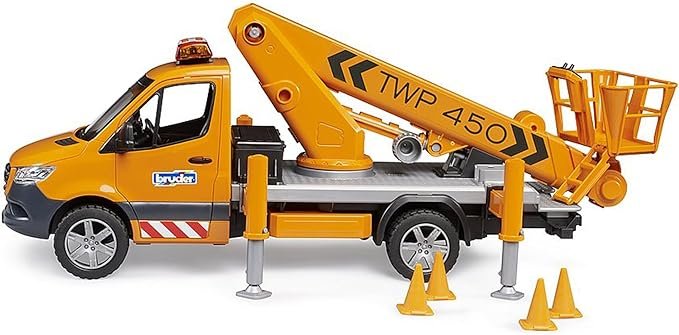 L’ultimissima novità BRUDER è lo Sprinter MB con piattaforma di lavoro. Le piattaforme di lavoro mobili sono necessarie per eseguire lavori in altezza, ad es. su alberi, illuminazione stradale o segnaletica stradale. La piattaforma di lavoro BRUDER solleva in sicurezza ogni personaggio bworld a un’altezza massima di 70 cm! Grazie alla tecnologia integrata, il cestello portapersone rimane in posizione orizzontale quando il braccio della gru è esteso. Il veicolo è dotato di 4 stabilizzatori estraibili e 4 piloni per delimitare l’area di lavoro. Le portiere della cabina dello Sprinter sono ovviamente apribili, e il modulo Light & Sound è già installato per garantire la sicurezza e la buona manovrabilità del veicolo. Nell’enorme assortimento Bruder, questo veicolo riprodotto fedelmente può essere esteso senza problemi con il veicolo comunale MB Sprinter (n. art. 02677), il lavoratore comunale bworld (n. art. 62130) e il set da cantiere (n. art. 62007).