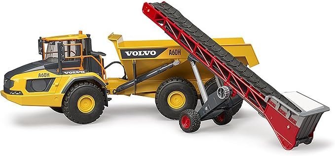 I nastri trasportatori sono particolarmente utili per l’uomo nel trasporto di merci sfuse quali sabbia, ghiaia e così via. In ambito agricolo, sono utilizzati per agevolare il trasporto di balle di fieno, ceppi di legno e altri materiali solidi. Per alleggerire il ?duro? lavoro dei nostri piccoli costruttori e agricoltori, BRUDER ha deciso di introdurre sul mercato un nastro trasportatore moderno. L’attrezzatura da lavoro evidenzia la massima cura per gli aspetti estetici, mentre le manopole e la manovella semplificano notevolmente i meccanismi di sollevamento e trasporto. E questo consente di trasportare le balle di fieno sui carrelli per portarle nel fienile o anche di trasportare e scaricare sabbia o ciottoli dai camion. Il nastro trasportatore si adatta alla perfezione a tutti i veicoli di traino BRUDER, quali trattori, Unimog, camion (Sprinter incluso), ed è l’ideale per